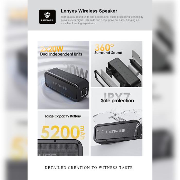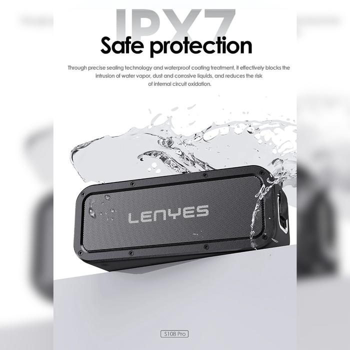 LENYES S108 PRO SPEAKER BLUETOOTH PORTABLE 40W WATERPROOF IPX7 HEAVY BASS WIRELESS - HITAM