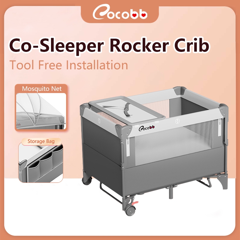 COCOBB Box Bayi Tempat Tidur Tempat Tidur Bayi Lipat Portabel - Co-Sleeper Rocker Crib dengan Mosquito Net, Usia 1-3 Ta