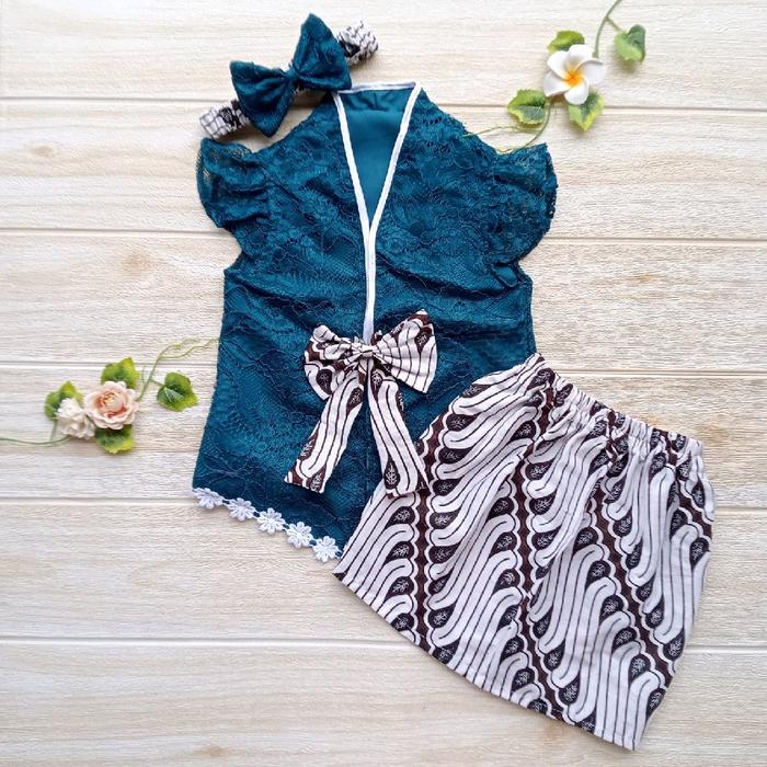 Kebaya Anak Perempuan / Setelan Kebaya Anak / Kebaya Bayi untuk TEDHAK SITEN / Kebaya Bayi Reyna warna Biru Emerald