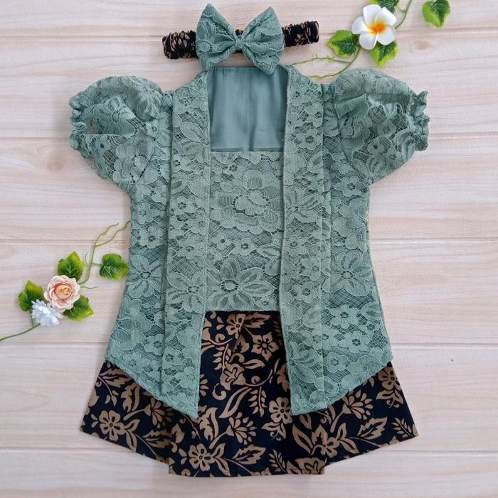 Kebaya Bayi Kutbar untuk Tedhak Siten / Kebaya Anak Perempuan / Kebaya Anak warna Sage Green