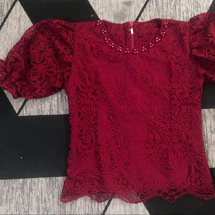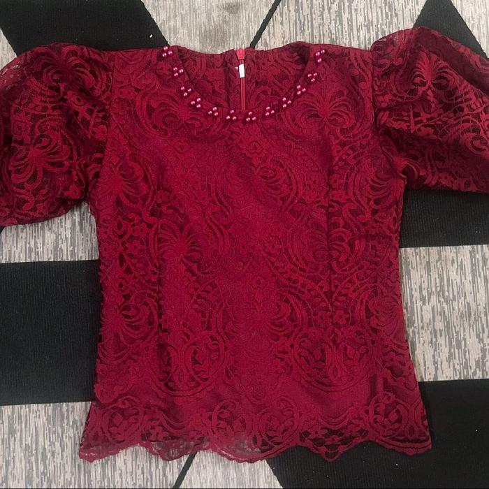 Blouse kebaya anak perempuan usia 3 -10 tahun model lengan balon leher bulat//kebaya anak viral modern lucu Baju Fashion