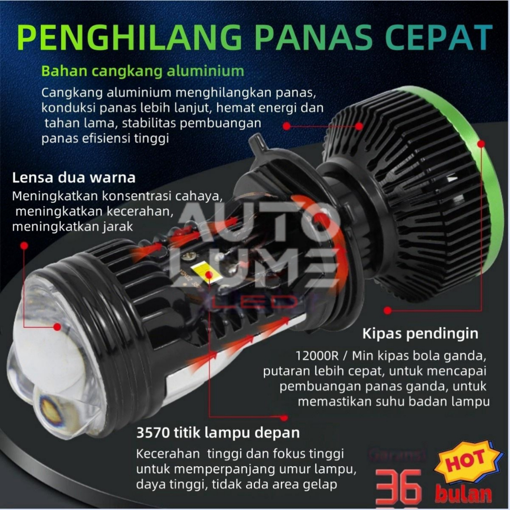 Lampu Mini Projie LED H4 110W - Super Terang | Mobil & Motor | IP67 | Garansi 3 Tahun