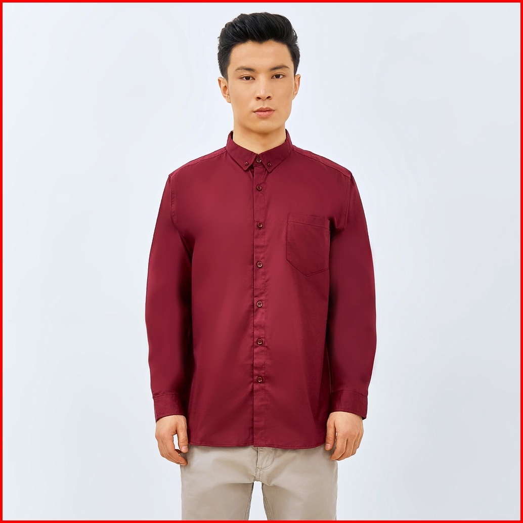 M231 Kemeja Pria Basic Polos Oxford Panjang Maroon 1456p