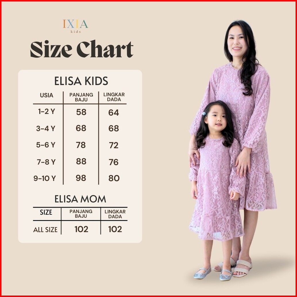 Ixia Kids Elisa Dress Baju Dress Couple Ibu Anak Perempuan 1-10 Tahun