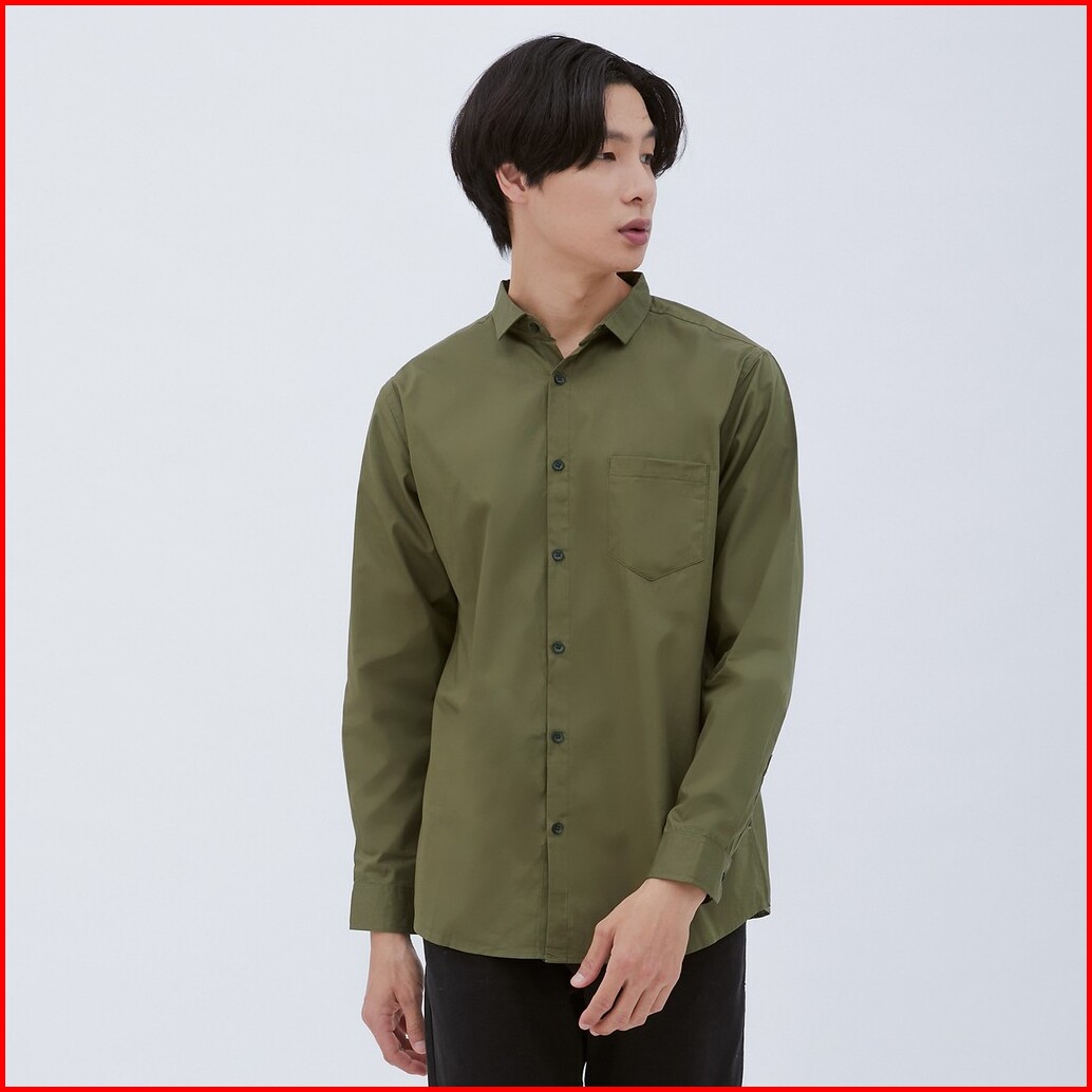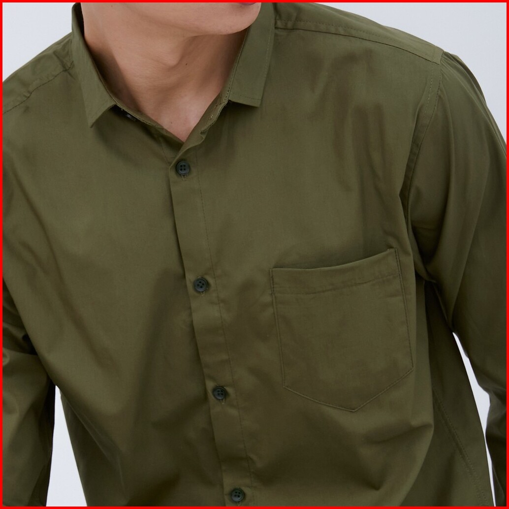 M231 Kemeja Pria Basic Polos Panjang Army 1468j