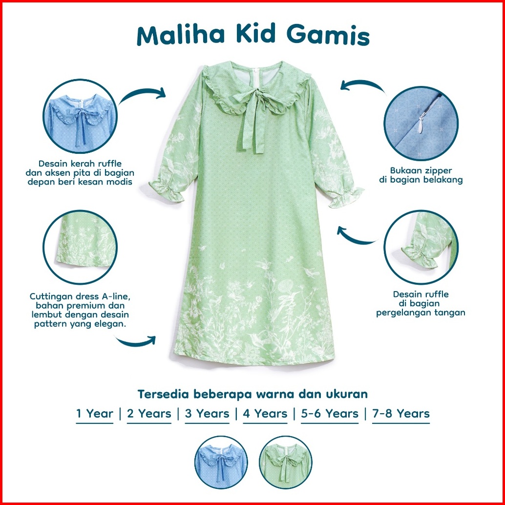 Nice Kids Maliha Toddler Dress Baju Lebaran Anak Perempuan Motif Toile Premium Gamis Lebaran Anak Perempuan Terusan Baju