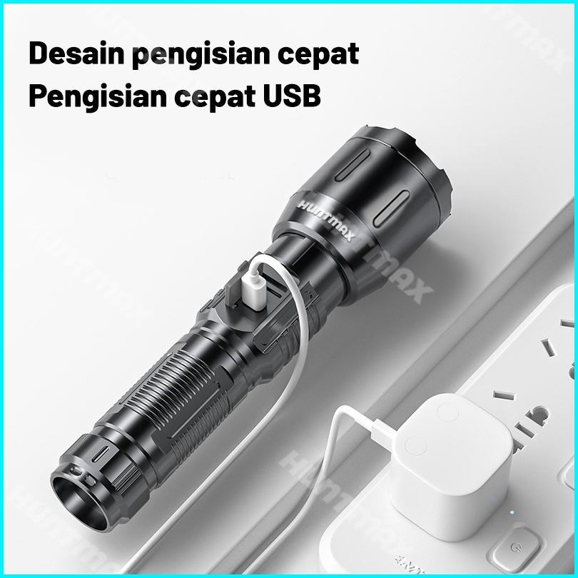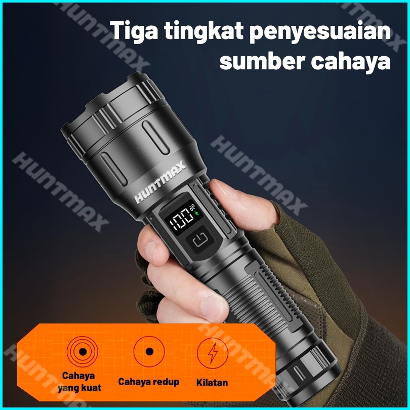 Huntmax Flashlight Senter Led Super Terang Senter Super Terang Zoom Teleskopik 3000 Mah Daya Tahan Baterai Yang Lama
