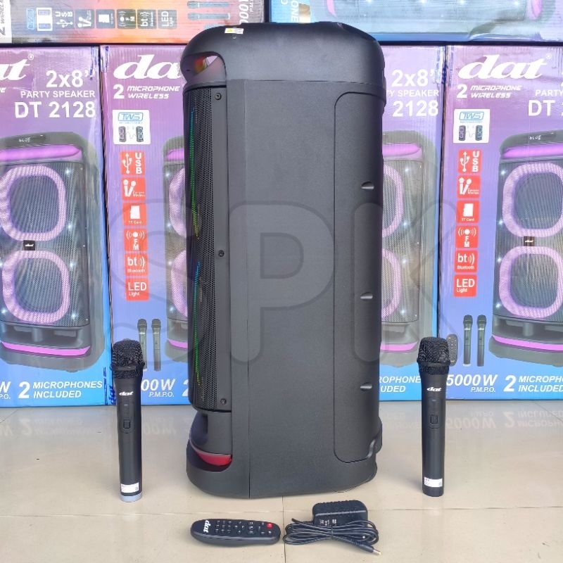 Speaker Portable DAT DT 2128 PARTY SERIES 8 inch 2 Mic Wireless
