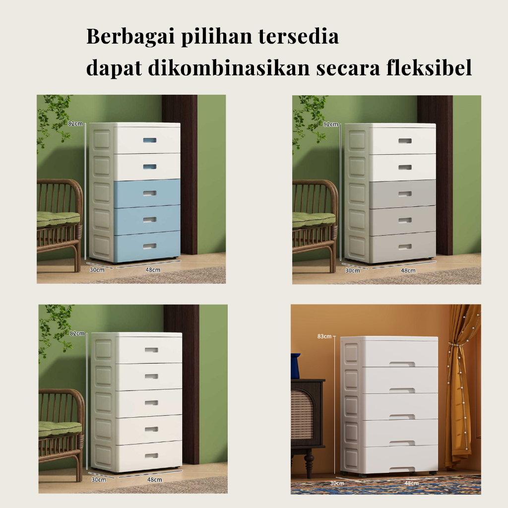 LAGO Lemari Plastik Susun 5 Tingkat - Lemari Pakaian Plastik Tahan Air Anti Rayap Ruang Luas & Mudah Montage
