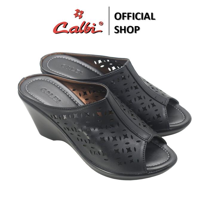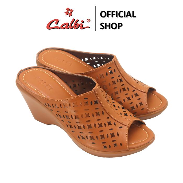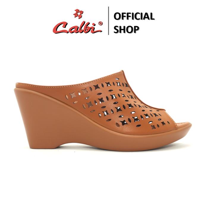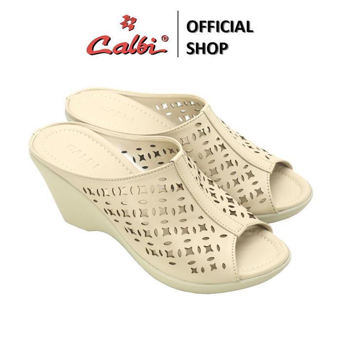 CALBI DQE 131 SANDAL WEDGES SLIP-ON PEREMPUAN 7CM MOTIF FORMAL ELEGAN ADELINE - KREM, 37