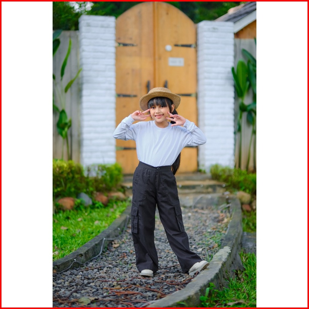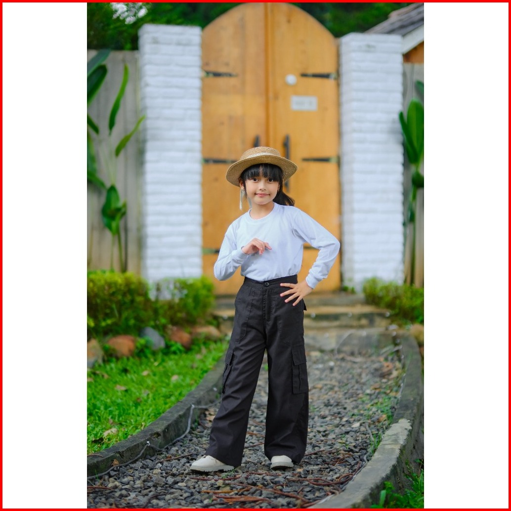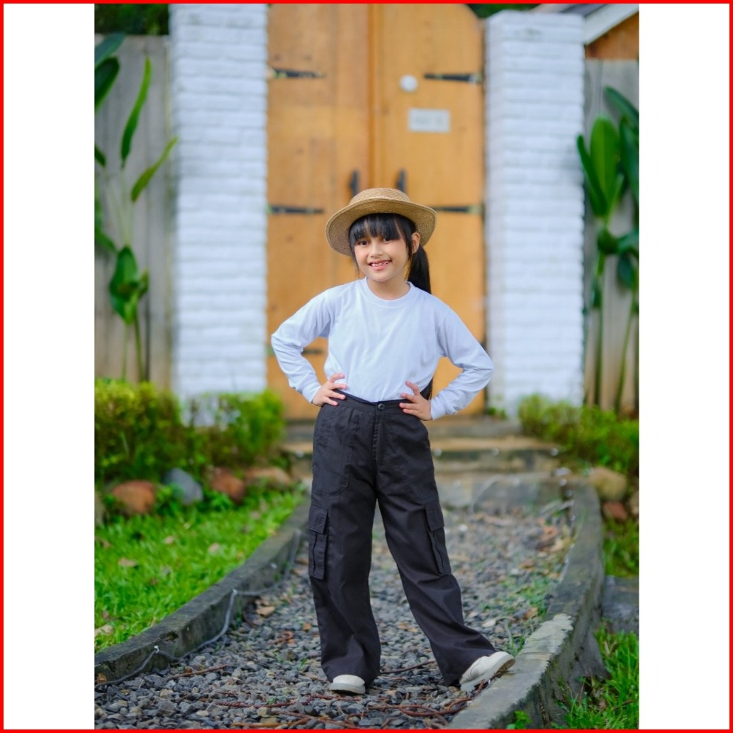 3 - 14 Tahun Lais Cargo Pants Celana Cargo Panjang Anak Perempuan Warna Hitam Jenaka Kids