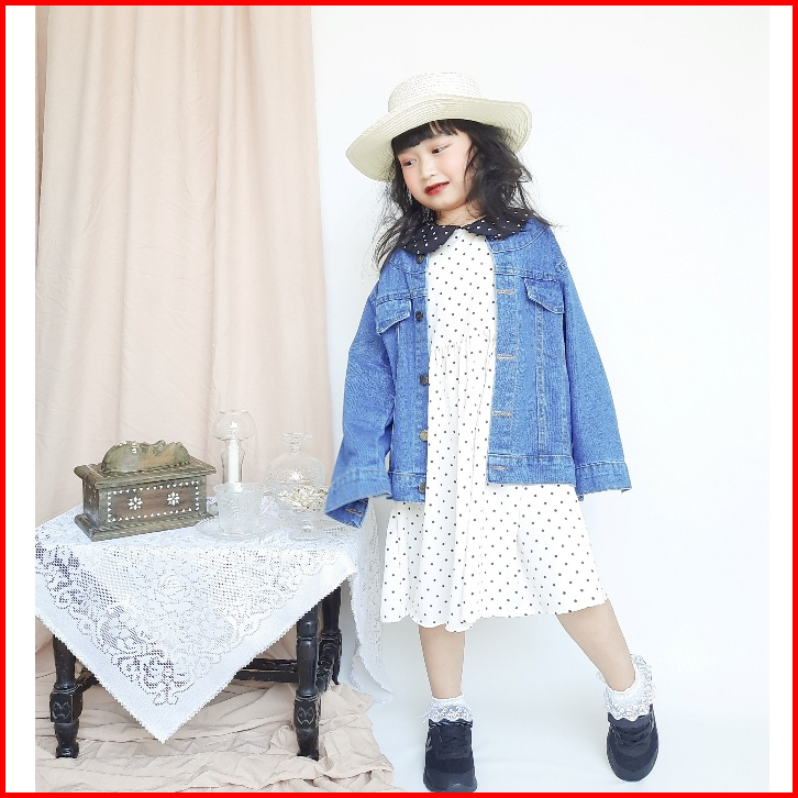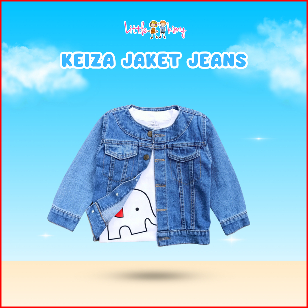 Littlekimy Keiza - Jaket Jeans Anak Kerah Bulat Jacket Anak Perempuan Usia 1 - 7 Tahun