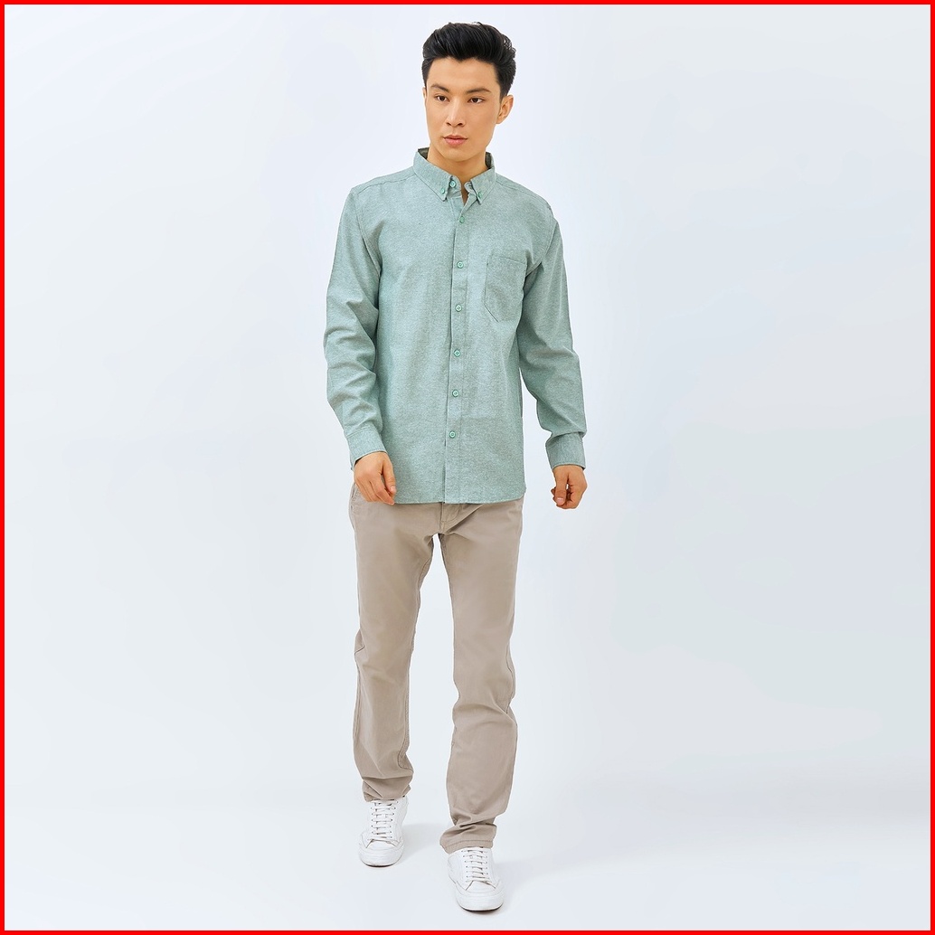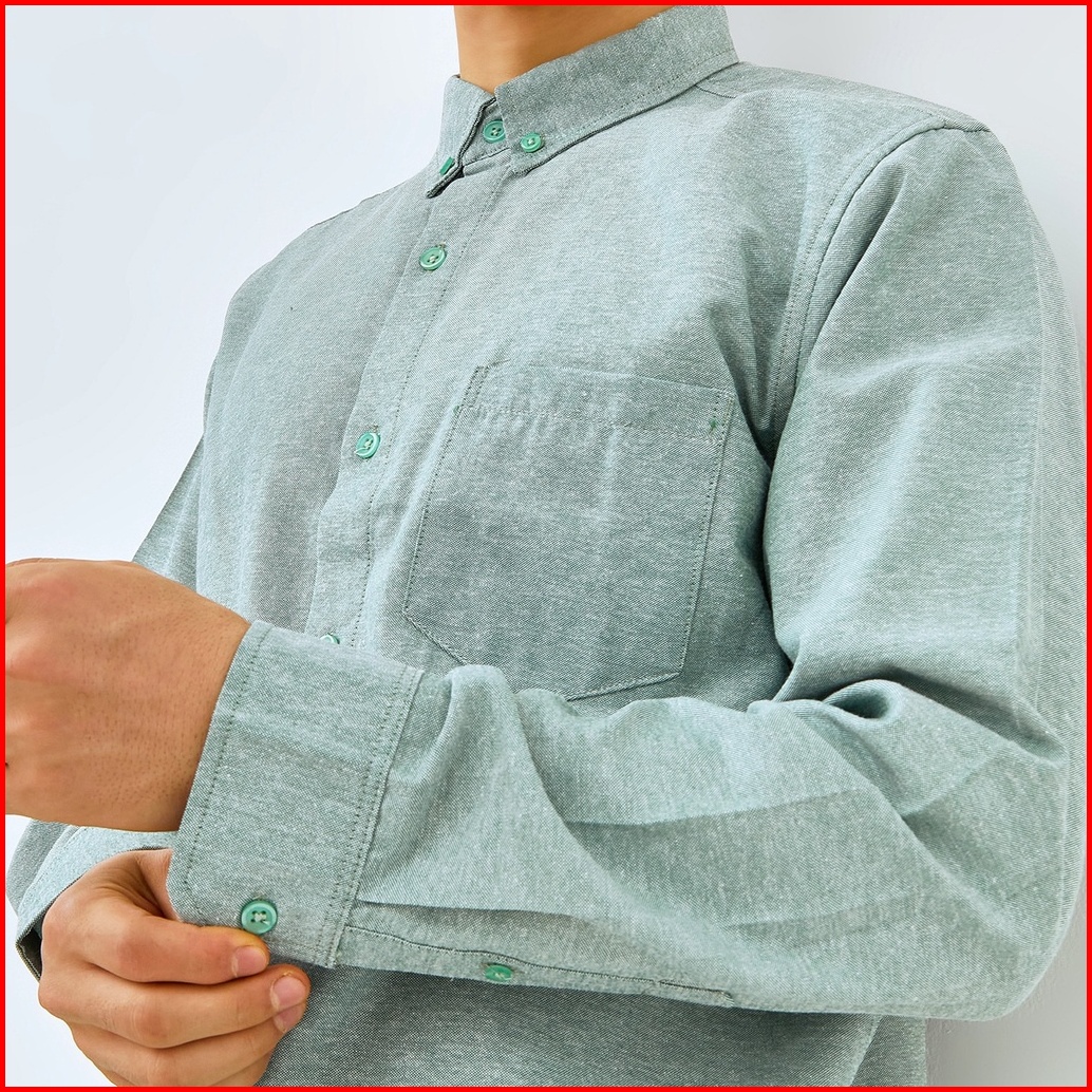 M231 Kemeja Pria Basic Polos Oxford Panjang Hijau 1456x