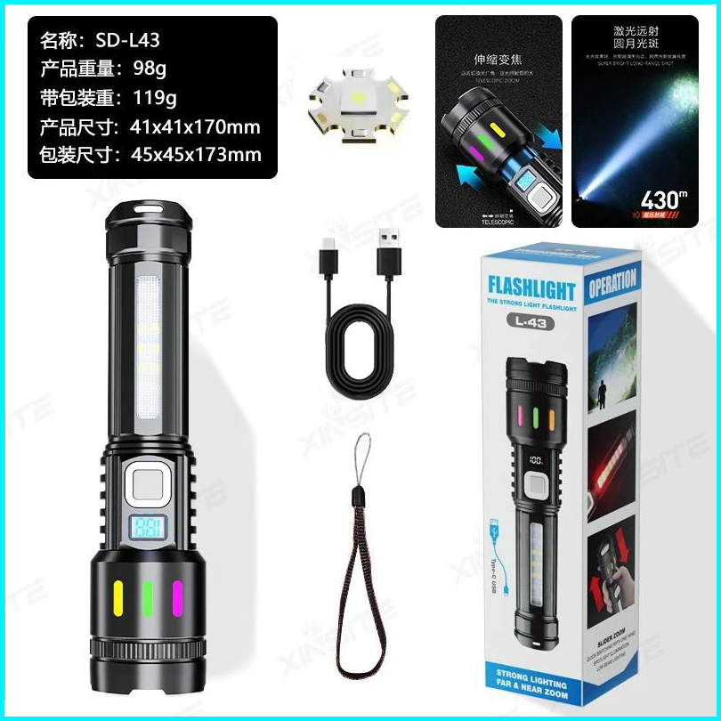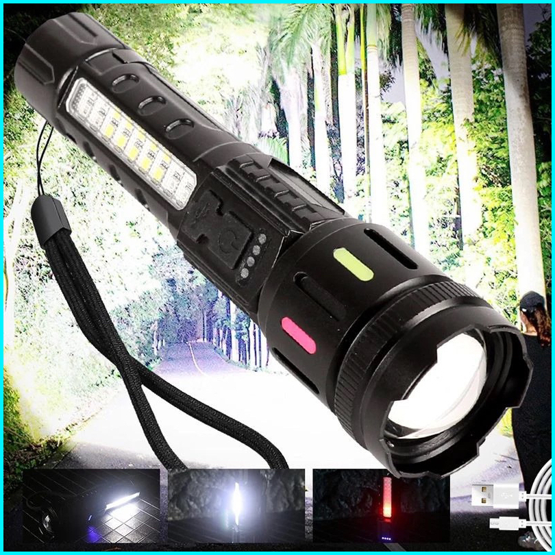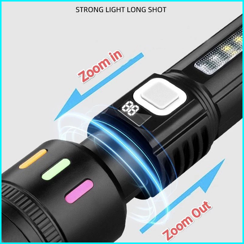 Senter Led Zoom Super Terang Jarak Jauh Lampu Samping Senter Led
