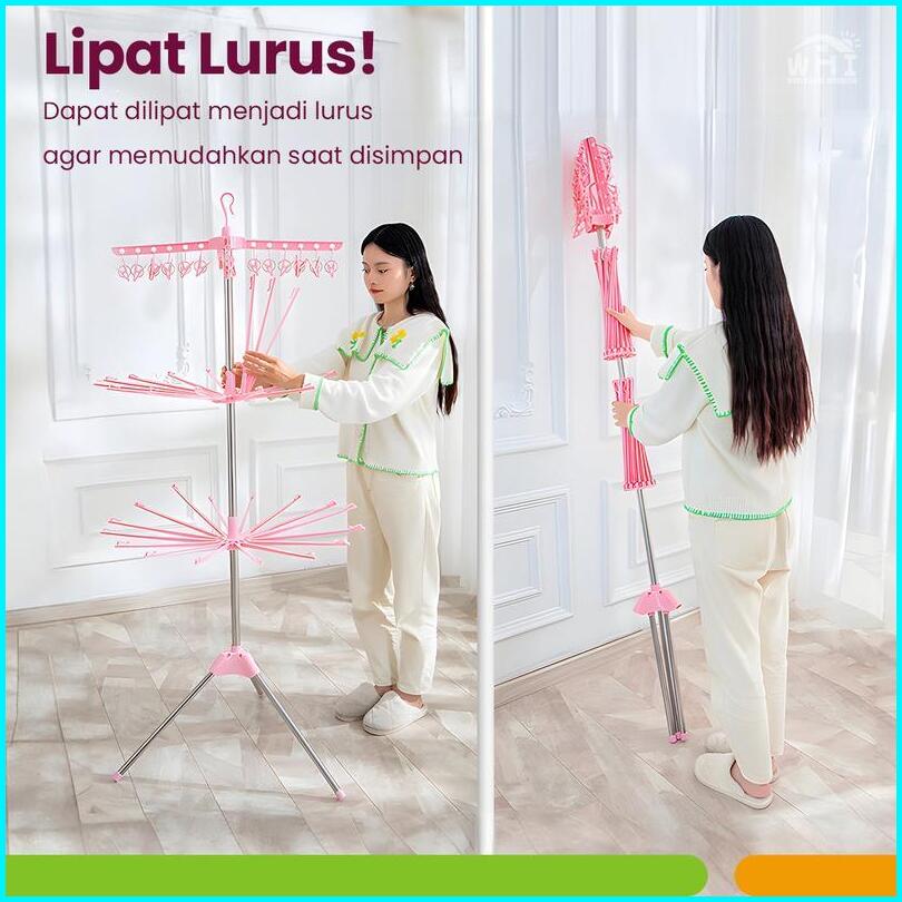 Rak Jemuran Handuk 24 Klip Dan 16 Cabang Jemuran Menara 3 Susun Jemuran Baju Lipat Stainless Steel Jemuran Handuk 3 Susu