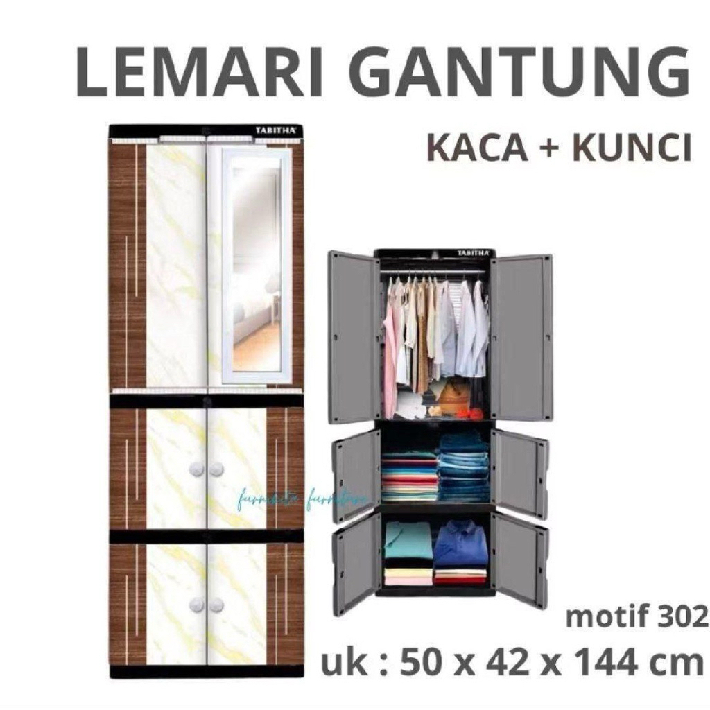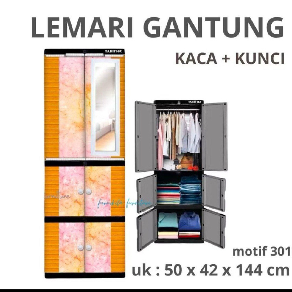 TABITHA Lemari Pakaian Plastik GANTUNG RAK FULL KUNCI KACA CERMIN MURAH LS2PS GT HB