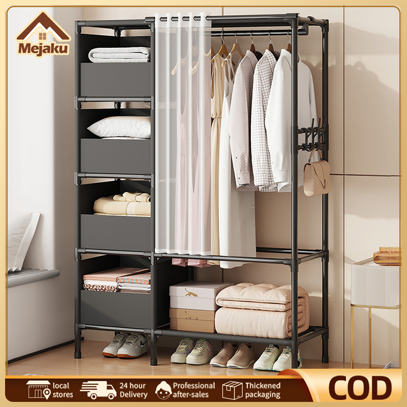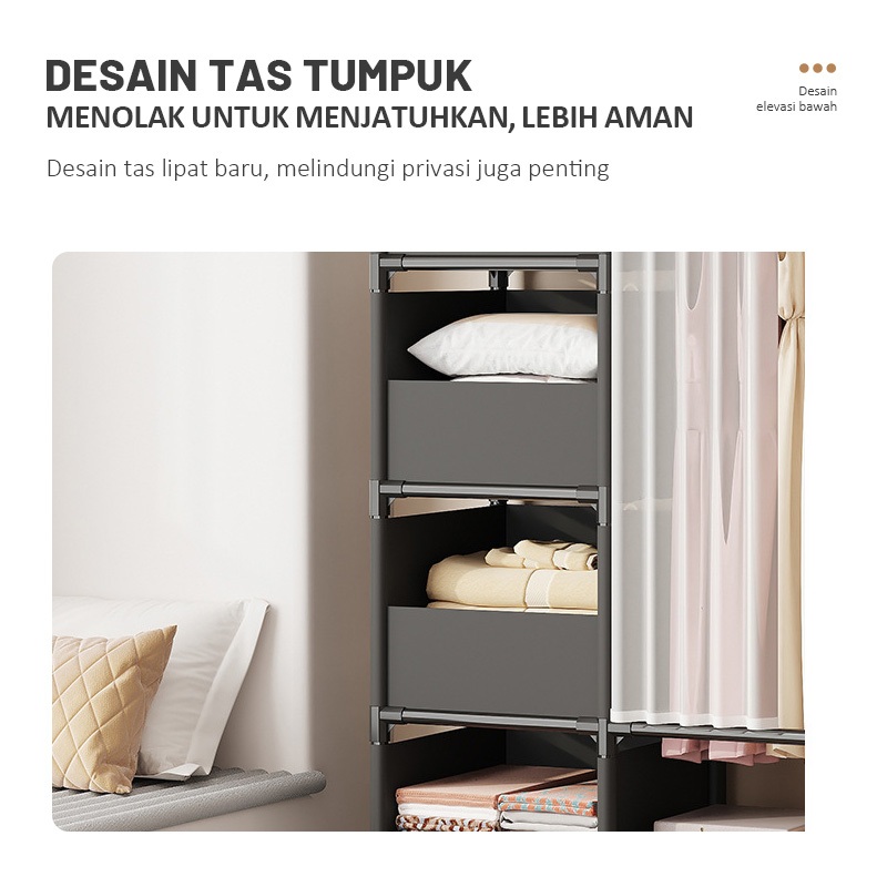Lemari Pakaian Sederhana Rak penyimpanan Rak Buku Kamar Tidur Multi-lapis Lemari Dengan Tirai Tahan Debu Anti Serangga