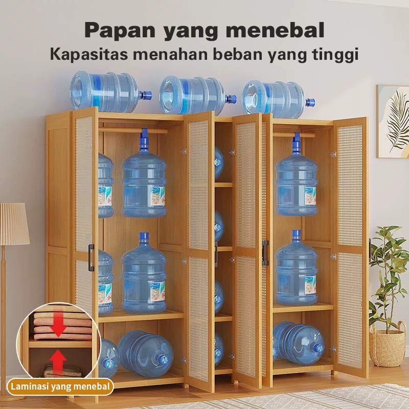 Kosistar Lemari Pakaian Bambu Minimalis Tertutup Rak Penyimpanan Baju Gantung Estetik Natural 120CM 90CM