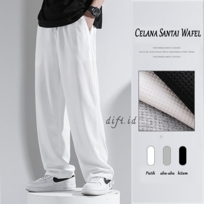 100rb dapat 2 Pcs Celana Oversized Joger Pria Classic Waffle Pants Celana Panjang Kasual Pria Baggy Pants Pria Celana Korean Style
