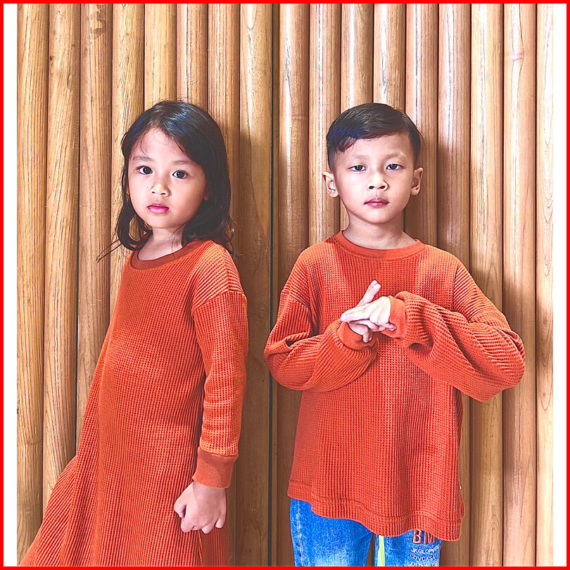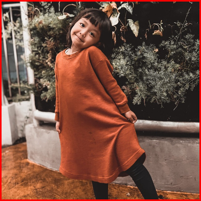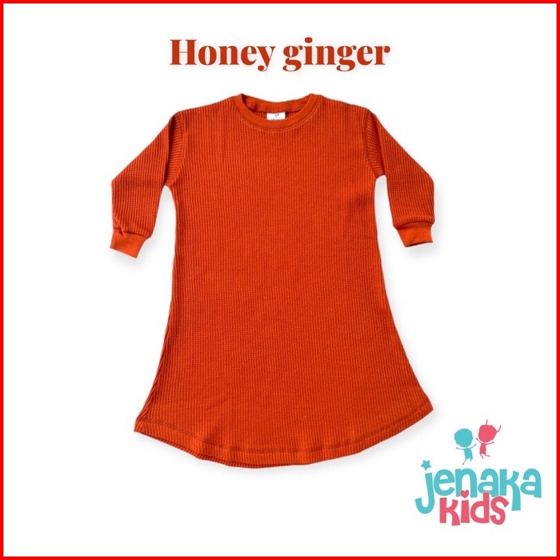 Jenaka Kids Maula Tunik Waffle Anak Perempuan Crew Neck Lengan Panjang