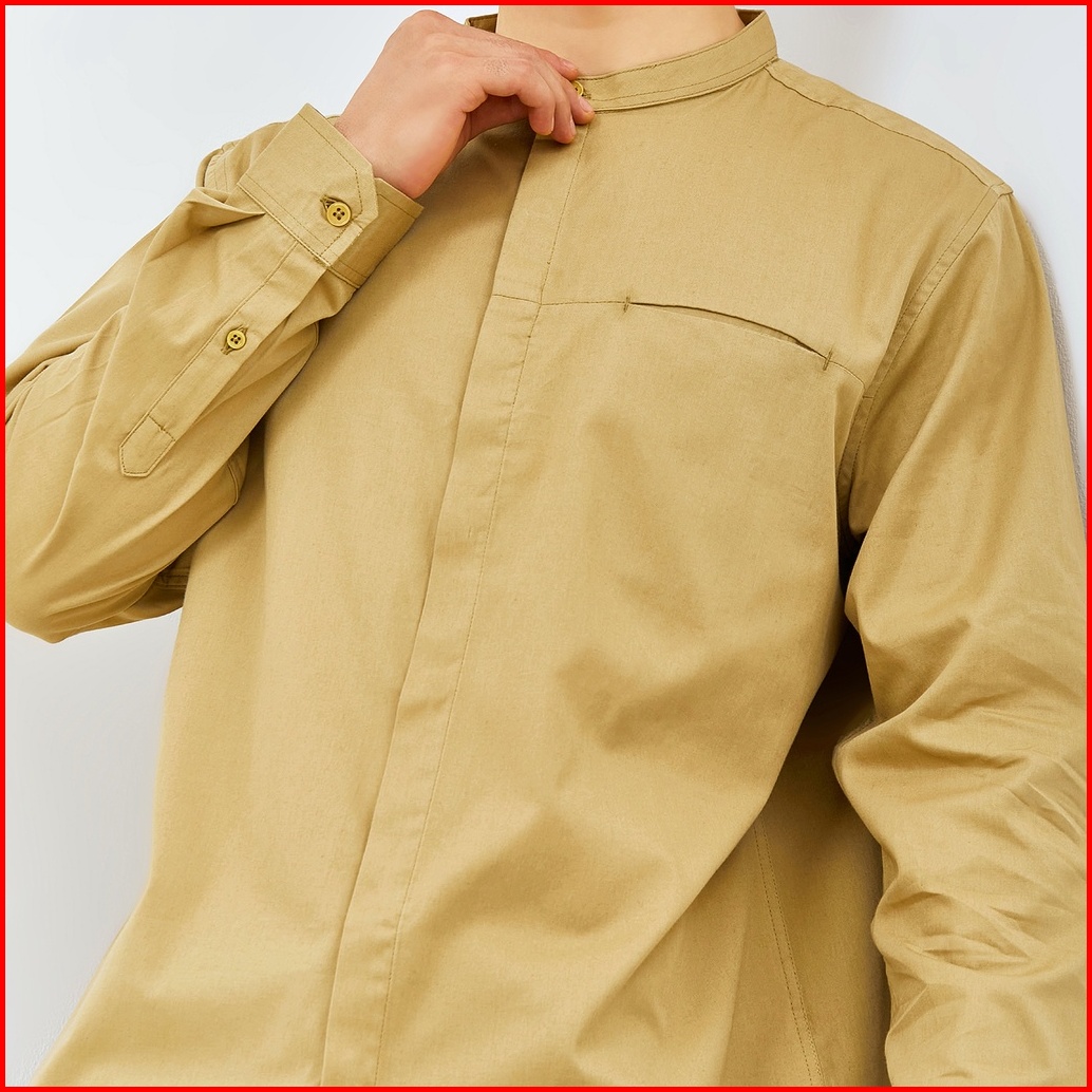 M231 Kemeja Pria Koko Shanghai Polos Soft Twill Panjang Khaki 1971l