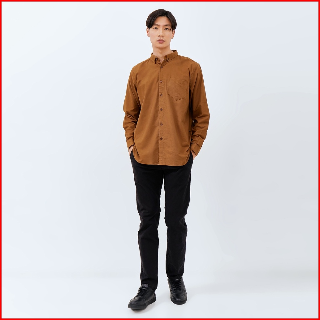 M231 Kemeja Pria Basic Polos Oxford Panjang Coklat 1456r