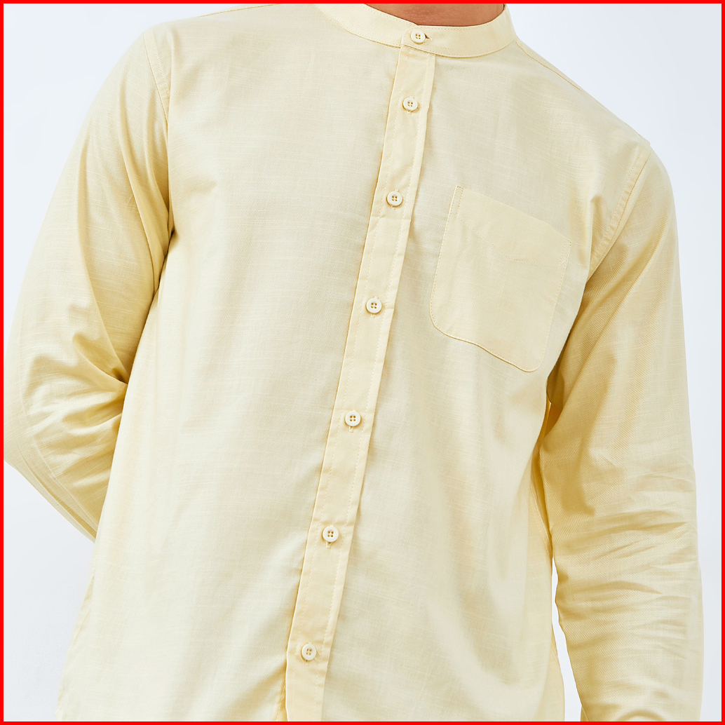 M231 Kemeja Pria Koko Shanghai Polos Panjang Kuning 0185b