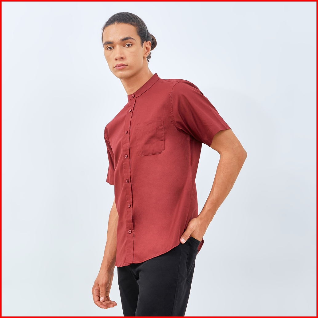 M231 Kemeja Pria Koko Shanghai Polos Pendek Maroon 0184i