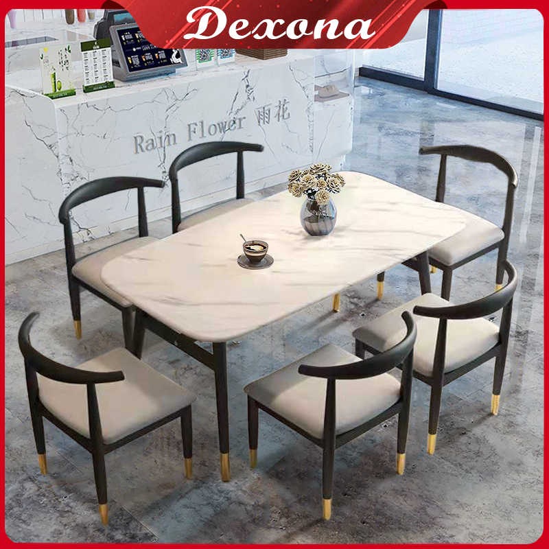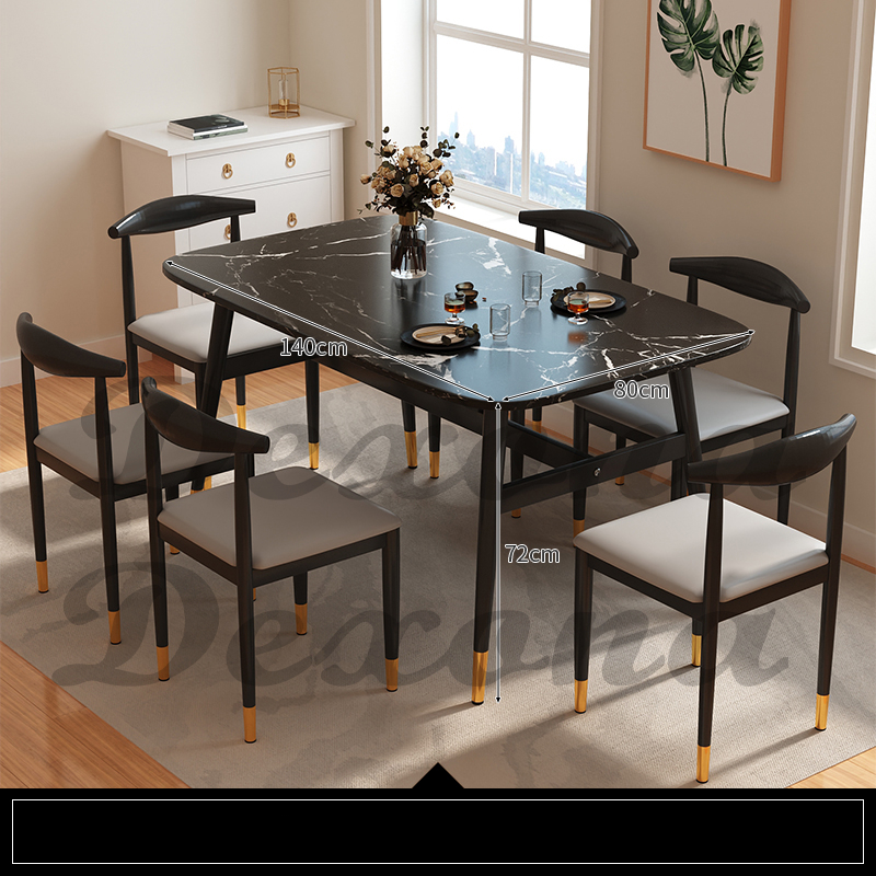 Meja Makan Set 4 Kursi / Meja Makan Aesthetic / Meja Makan Kayu Dengan Sticker Marmer/ Meja Makan