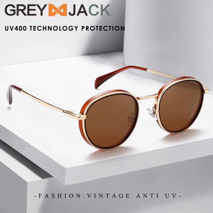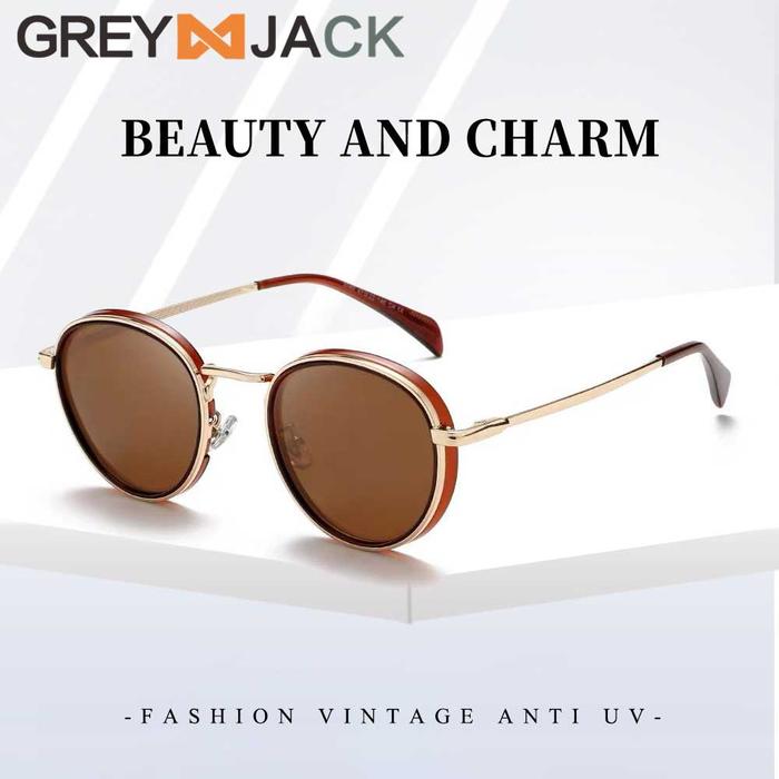Grey Jack Kacamata Sunglasses Anti Uv400 Sun Protection Model Bulat Bahan TR+Metal Ringan