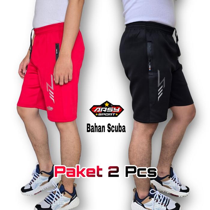 Arsy Sport - Paket 2 Pcs Celana Running Pria Bahan Scuba Premium Celana Pendek Olahraga Sport Short