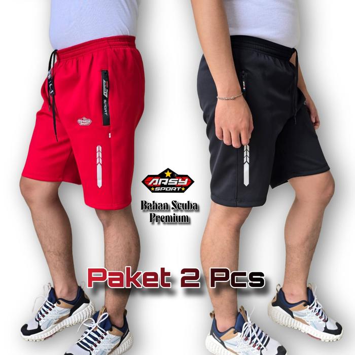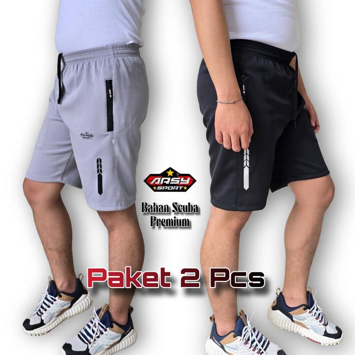 Arsy Sport - Paket 2 Pcs - Celana Running Pria Wanita Short Pant Gym SC003 - Bahan Scuba Elastic
