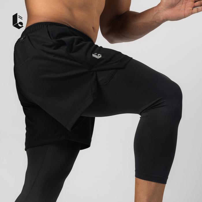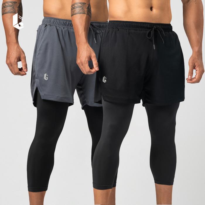 Celana Pendek Olahraga Pria Legging Sport Panjang 2in1 Short Pants Manset Baselayer Dry Fit Gym