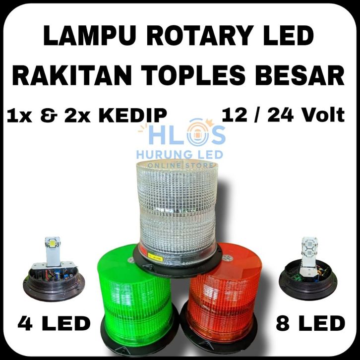 TERLAKU Lampu Rotary LED Toples Besar 4/8 LED 12V/24V 1x & 2x Kedip Truk Mobil Waterproof ( seri R ) eboch