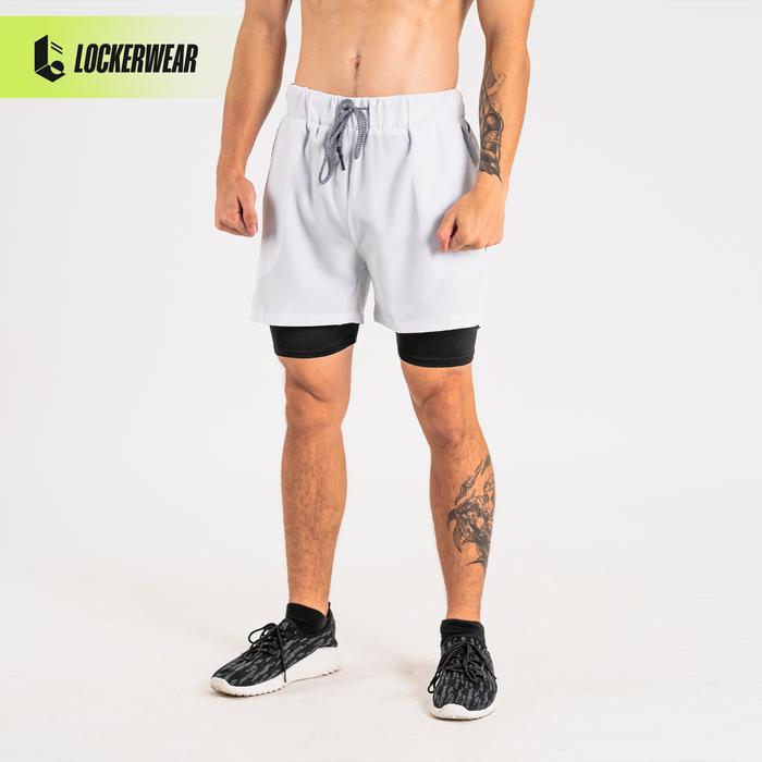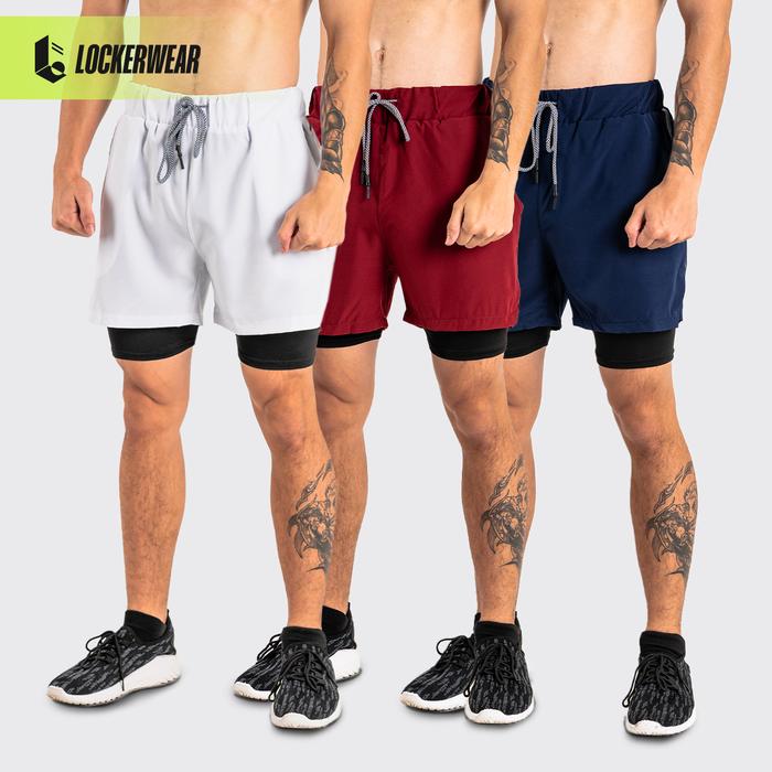 Celana Pendek Polos Running Jogging Gym Olahraga Pria 2 in 1 Legging Baselayer Manset Compression