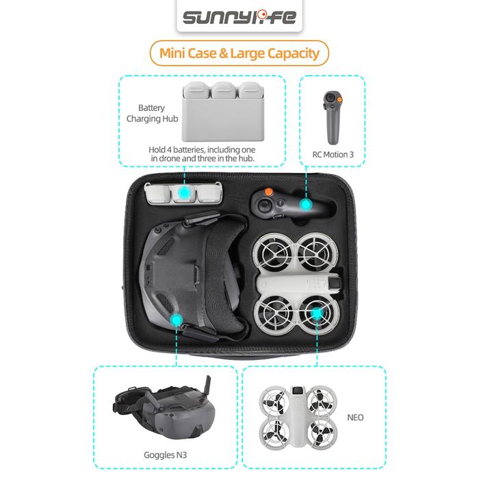SUNNYLIFE Tas Drone Portable For DJI NEO Motion Fly More Combo / Goggles N3 Carrying Hard Case