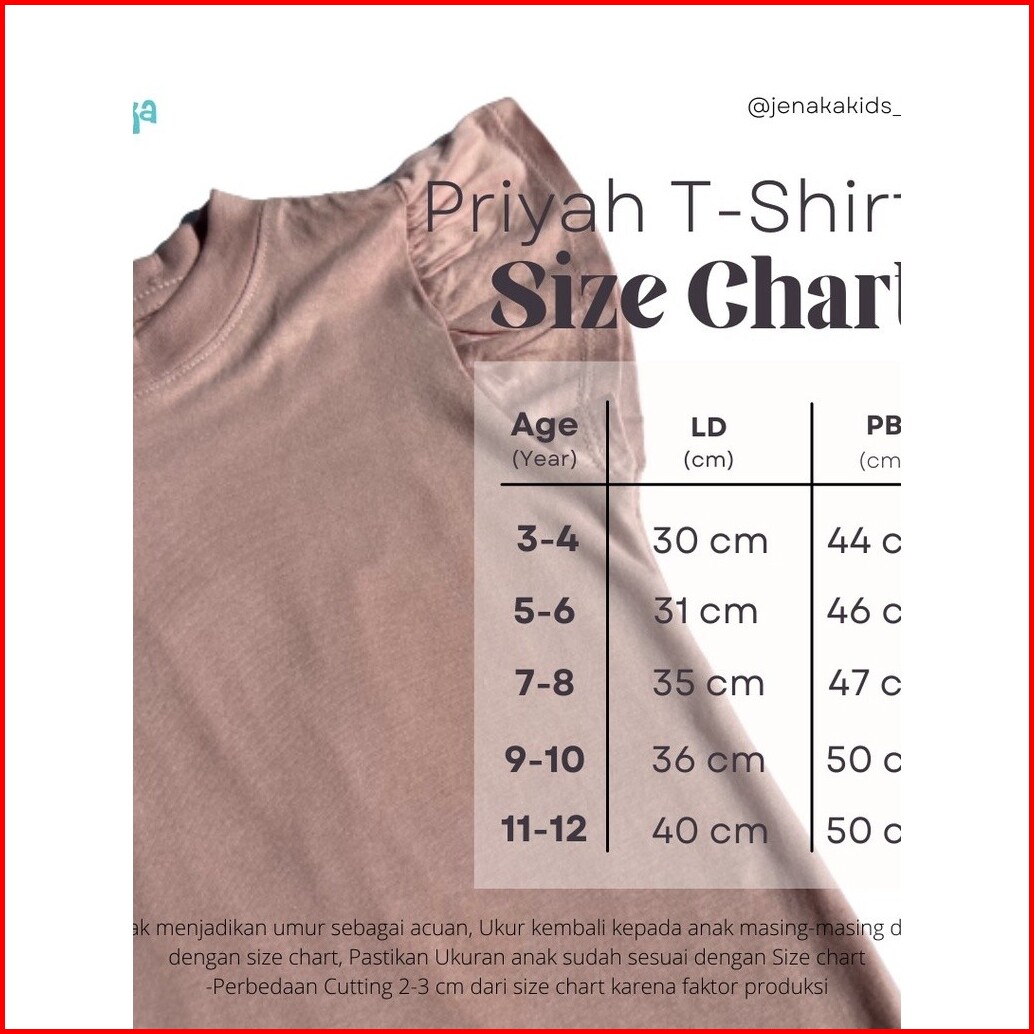 Jenaka Kids Priyah T-shirt Ruffle Anak Perempuan Bahan Cotton Usia 1 - 12 Tahun