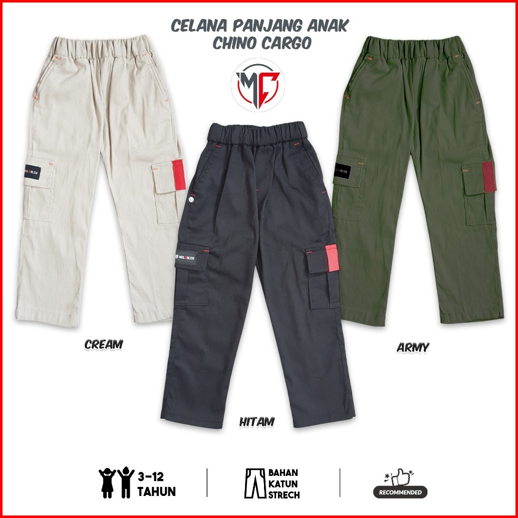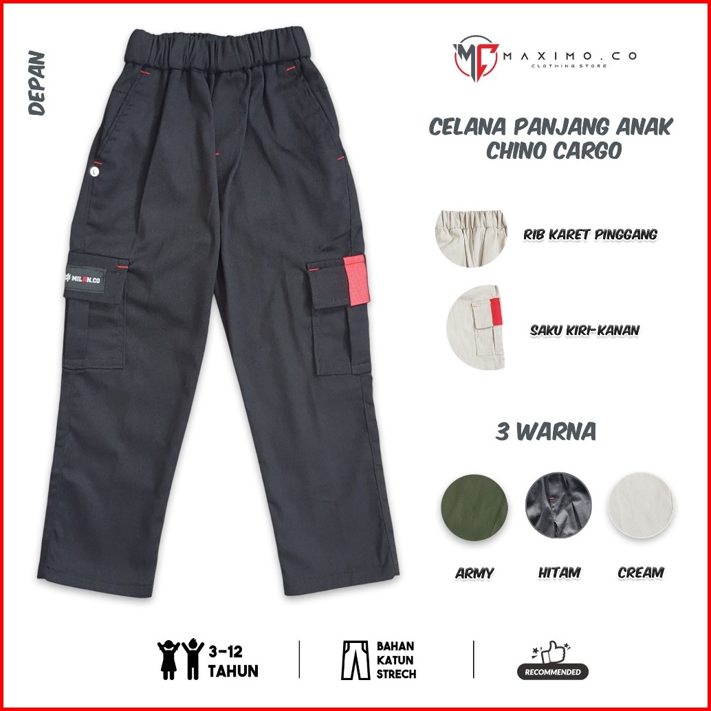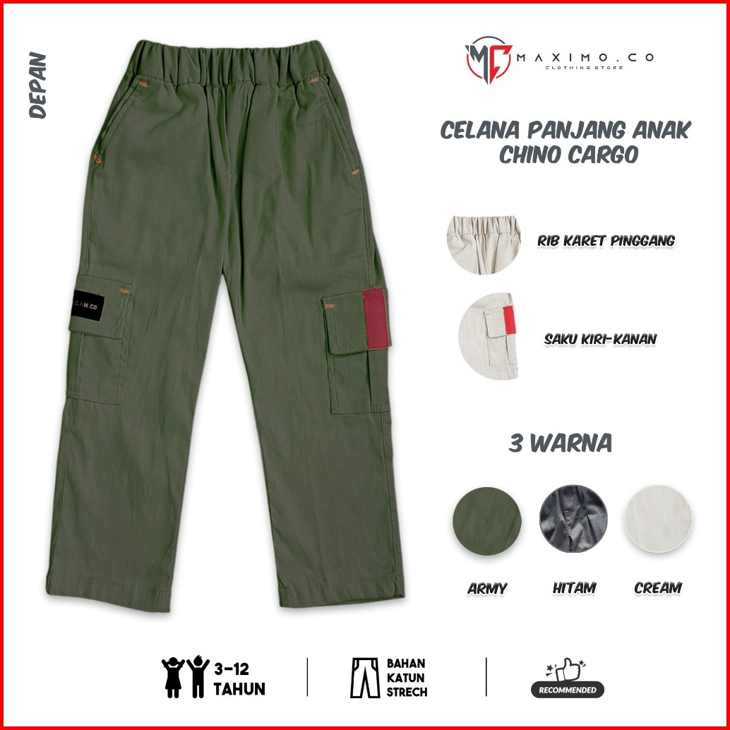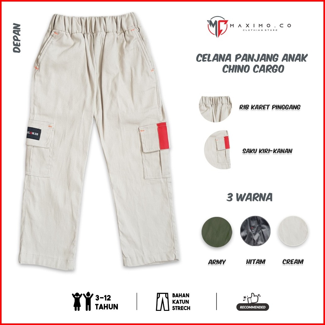 Maximo.co Celana Panjang Anak Chino Kargo Usia 3-12 Tahun Bahan Katun Strech