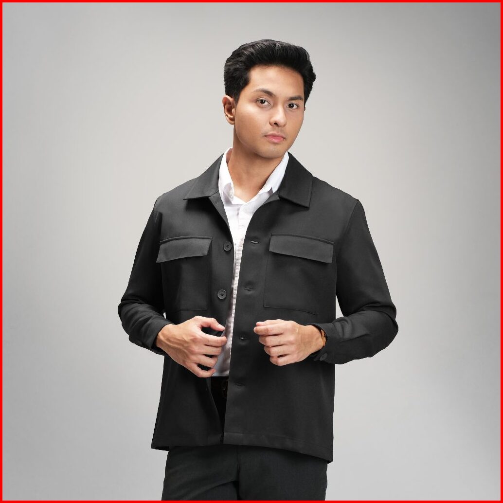 Cutoff Enzo Overshirt Polyester Outer Pria Premium Twill Lengan Panjang
