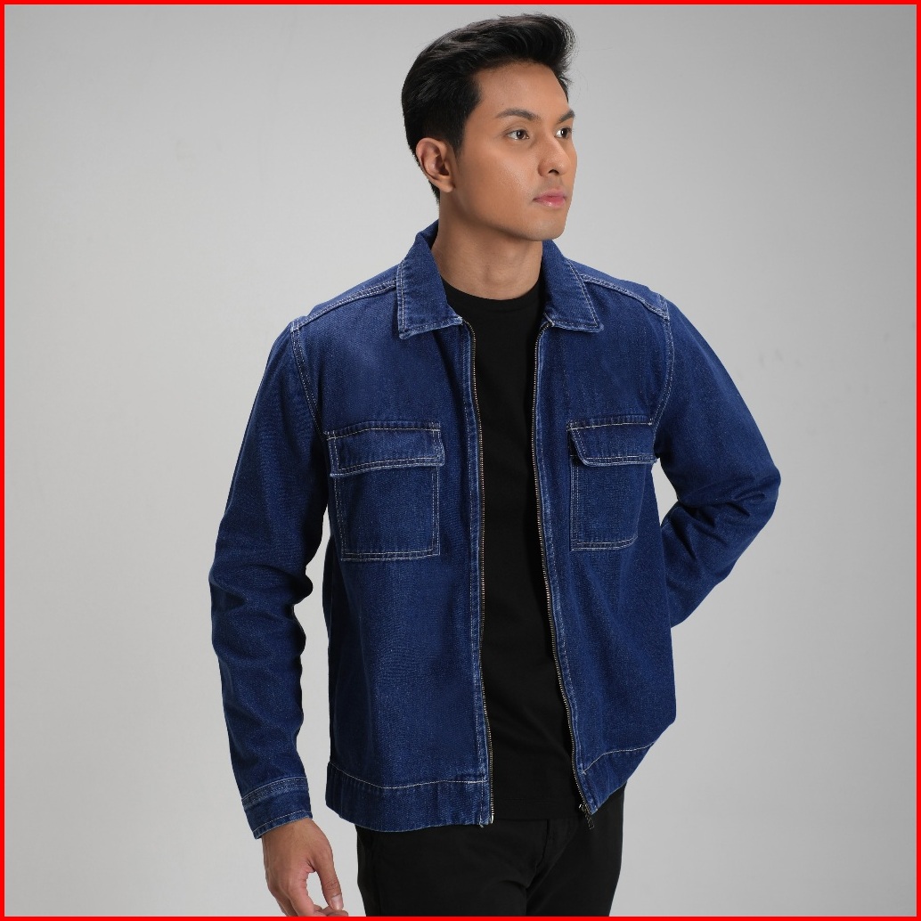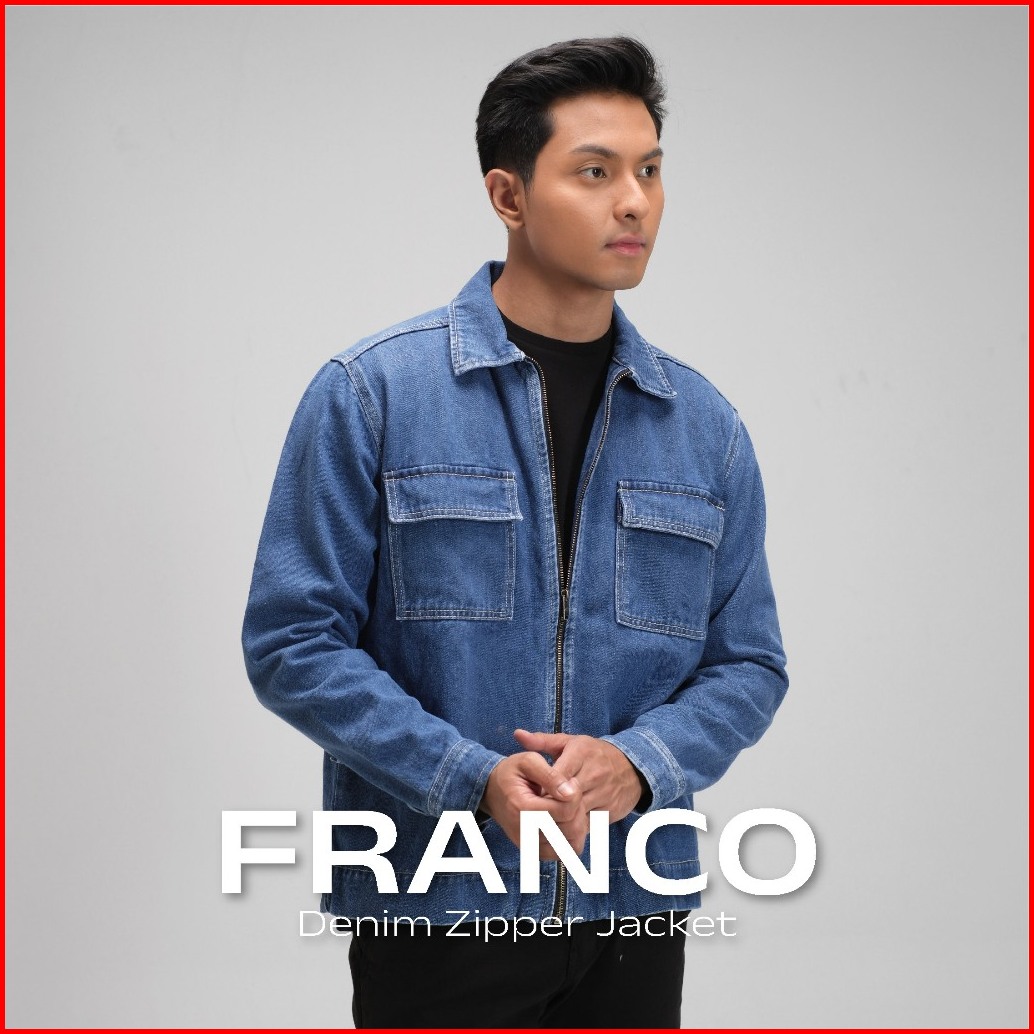 Cutoff Franco Jacket Jeans Denim Zipper Premium Pria Polos Washed