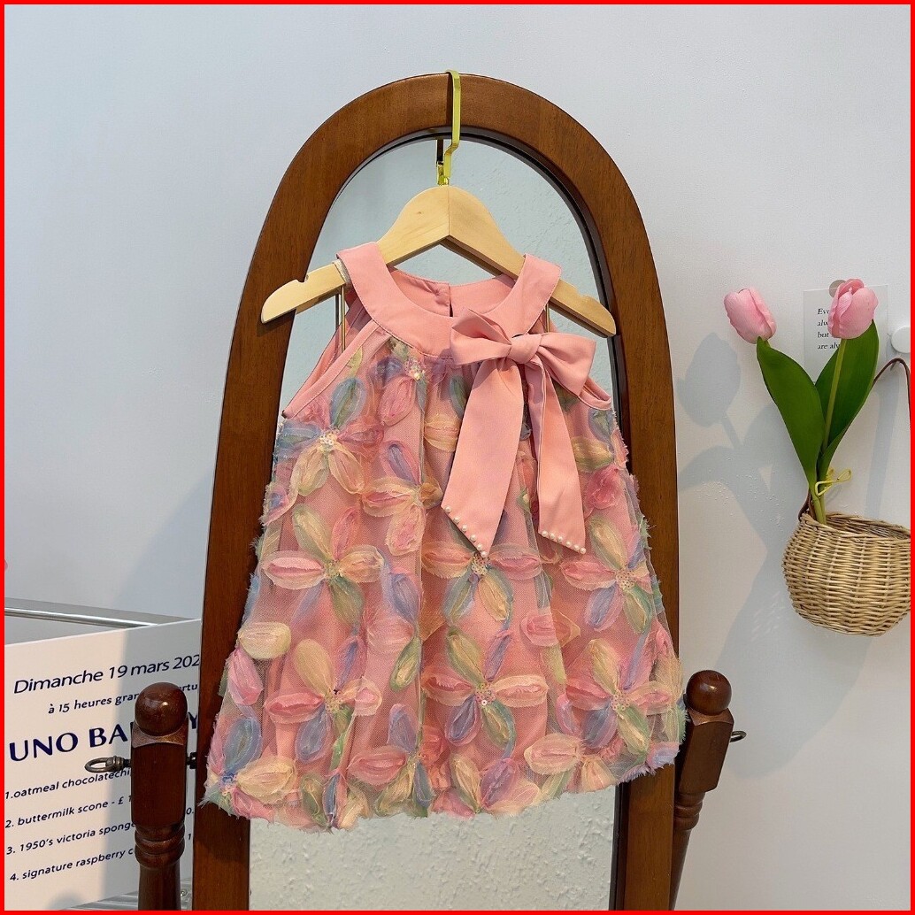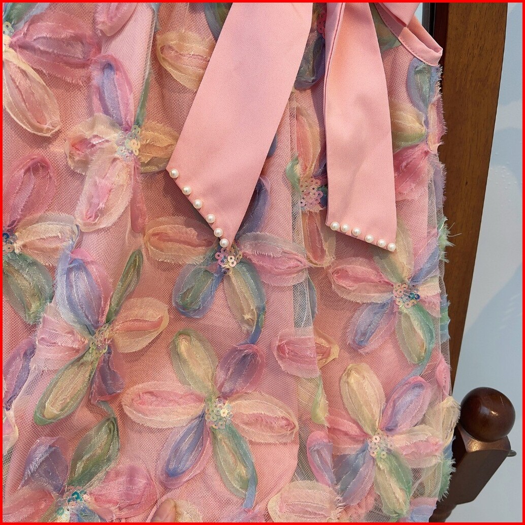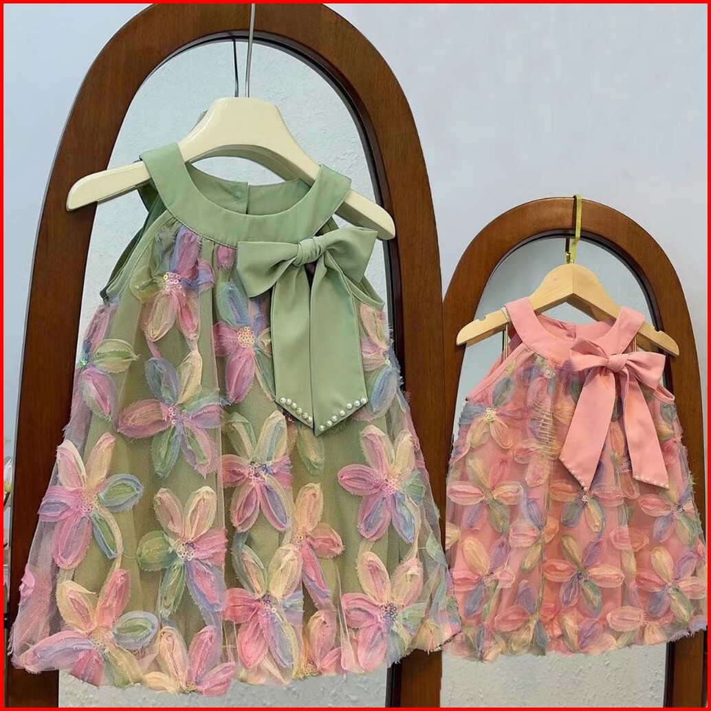 Luckyfankids - Setelan Anak Perempuan 1-7 Tahun Gaun Simpul Pita Dress Motif Bunga Timbul - Bap-31