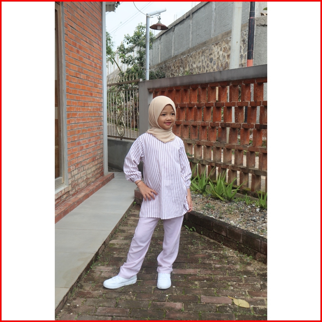 Jenaka Kids - Clara Setelan Tunik Motif Salur Striped Anak Perempuan 4 -14 Tahun