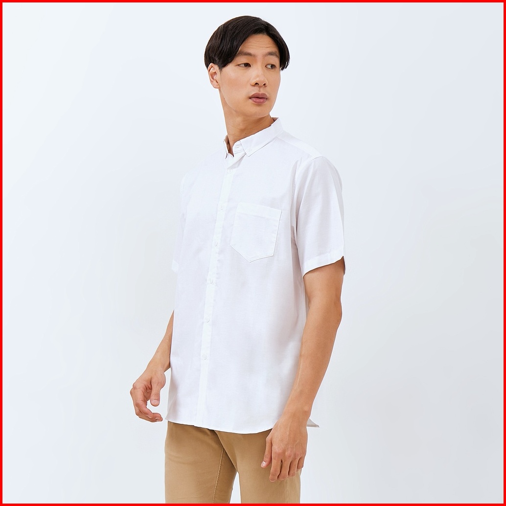 M231 Kemeja Pria Basic Polos Oxford Pendek Putih 1457t