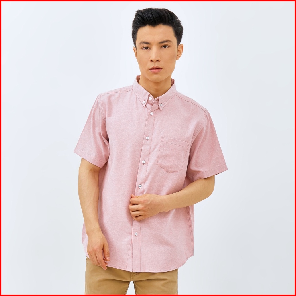 M231 Kemeja Pria Basic Polos Oxford Pendek Pink 1457r