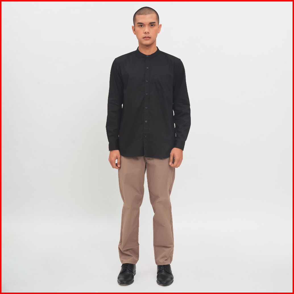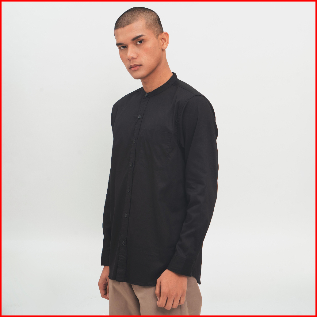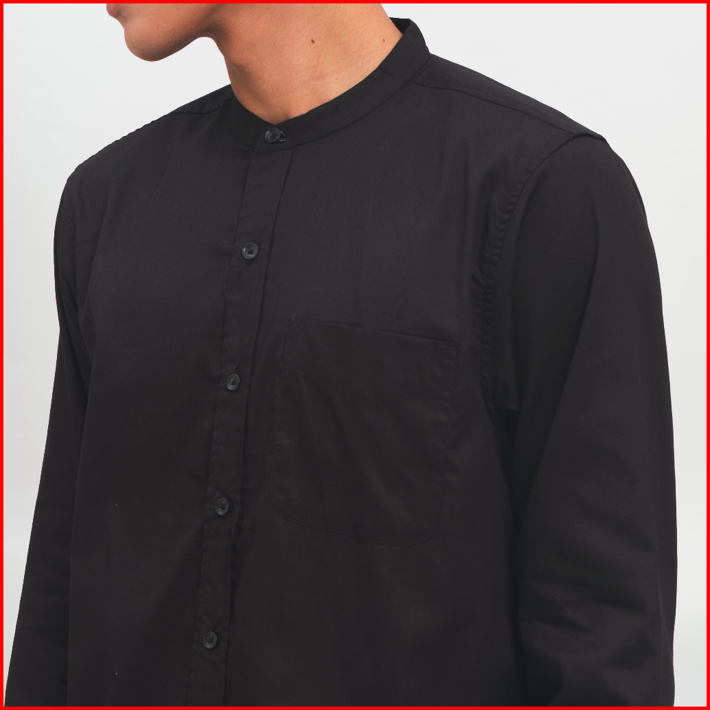 M231 Kemeja Pria Koko Shanghai Polos Panjang Hitam 0915e