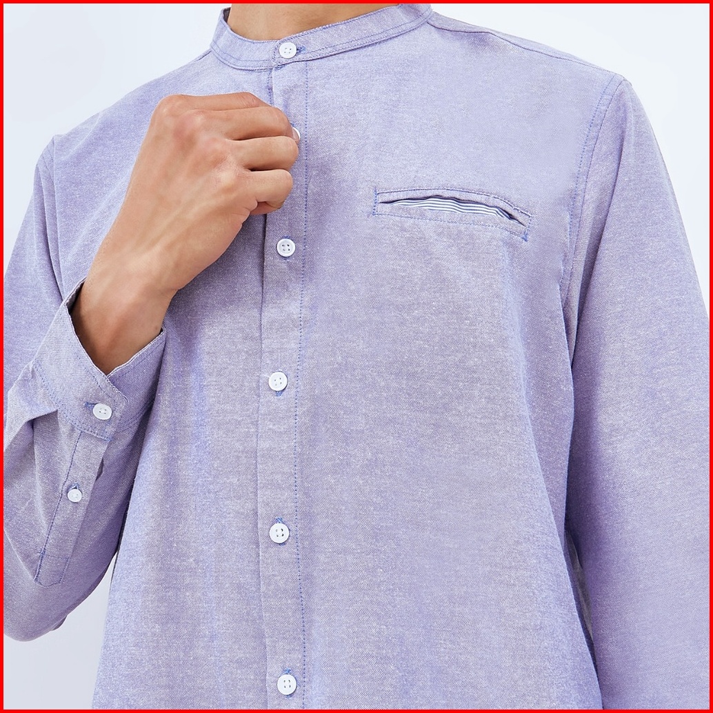 M231 Kemeja Pria Koko Shanghai Polos Oxford Panjang Biru 1552f
