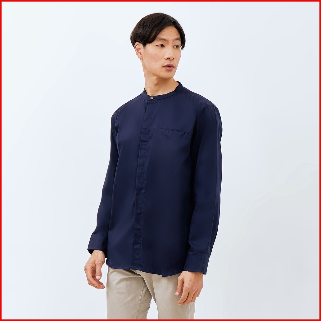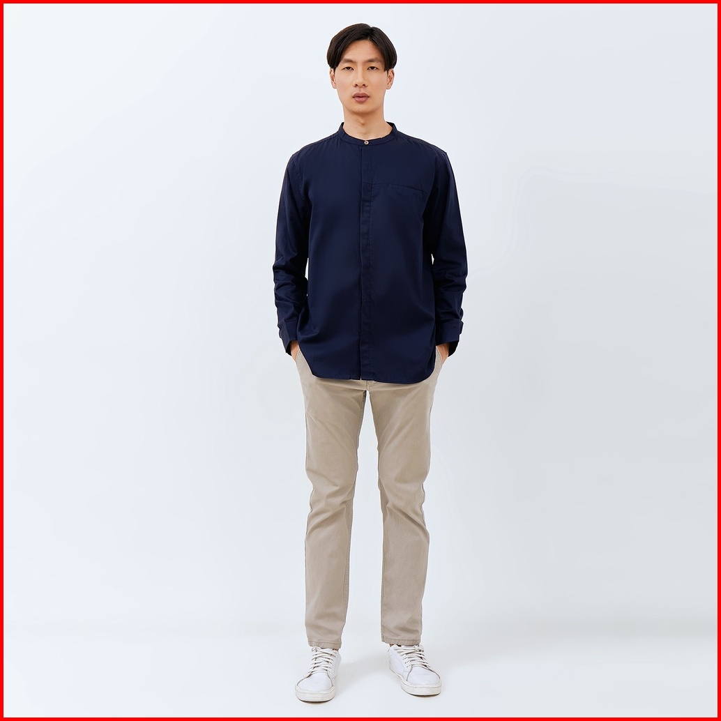 M231 Kemeja Pria Koko Shanghai Polos Soft Twill Panjang Navy 1971e