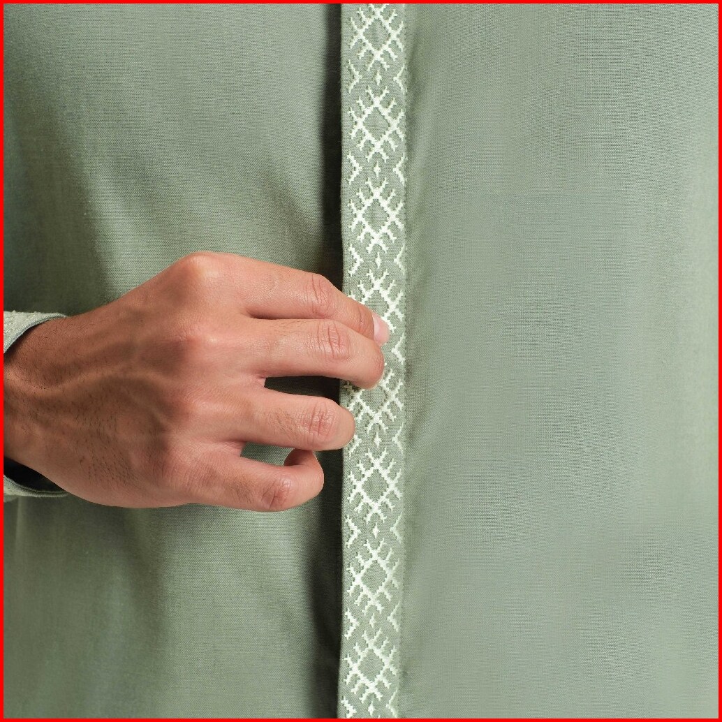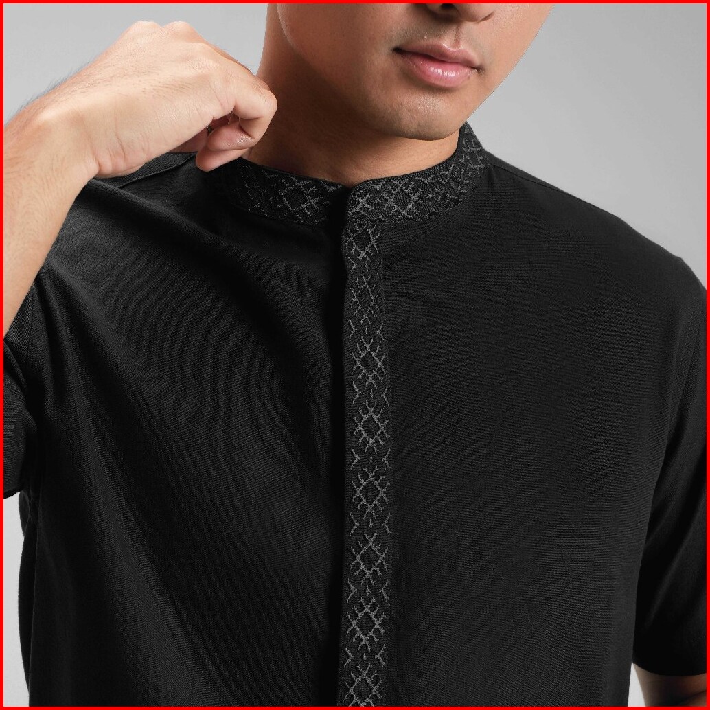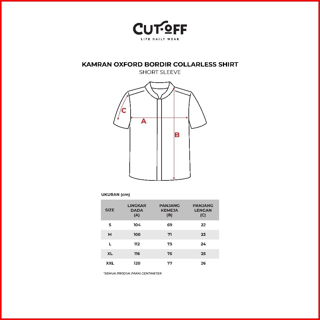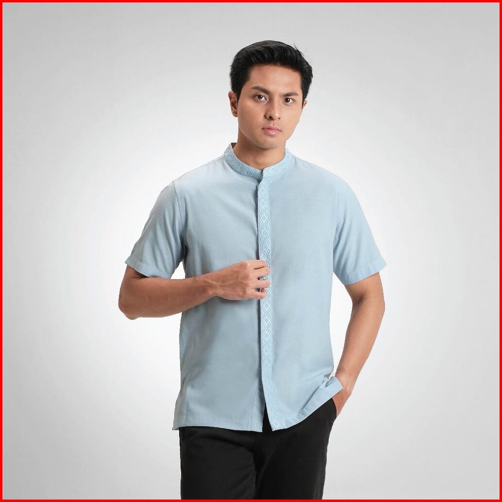 Cutoff Kamran Oxford Bordir Collarless Shirt Kemeja Koko Pria Lengan Pendek