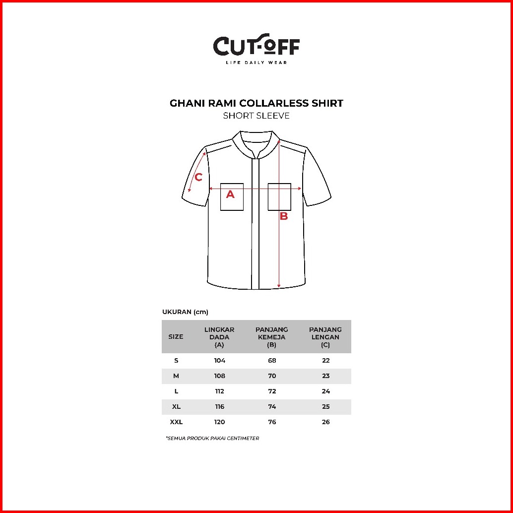 Cutoff Ghani Rami Collarless Shirt Kemeja Koko Pria Lengan Pendek