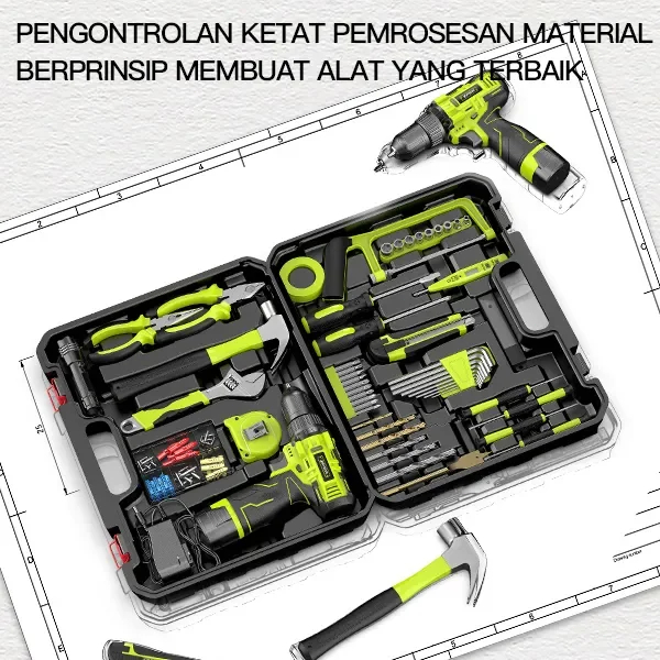 ZPER Satu Set Alat Perkakas Bor Listrik Cordless Tang Obeng Palu Kunci Pas Toolkit 124 in1 pcs
